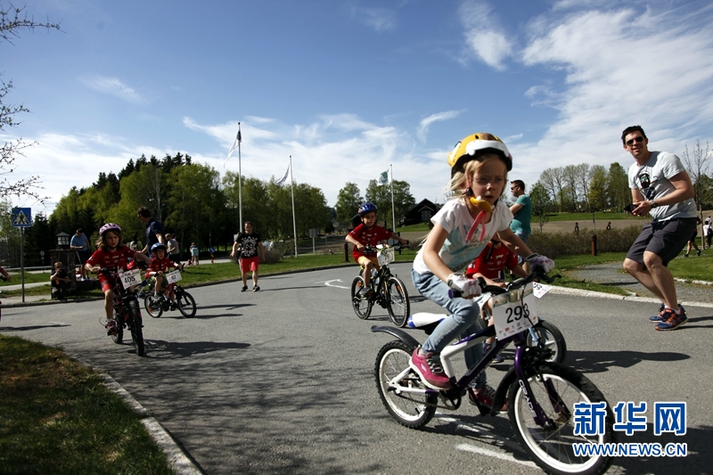 5月10日,2018年环挪威儿童自行车赛在挪威东部小镇松德沃伦举行第一站比赛。环挪威儿童自行车赛是挪威最大的年度儿童自行车比赛。今年的比赛将在挪威各地44个分站陆续展开。0到13岁的儿童均可免费报名参加。新华网记者梁有昶 摄