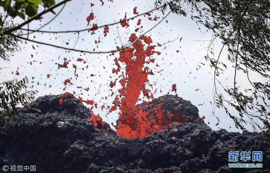 美国夏威夷基拉韦厄火山持续喷发 炽热岩浆飞溅而出