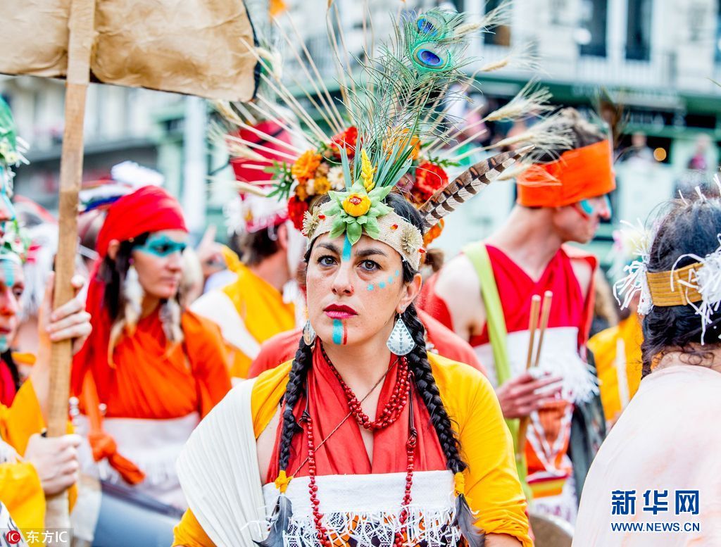 比利时首都举行大型节日游行 表演者奇异装束吸睛