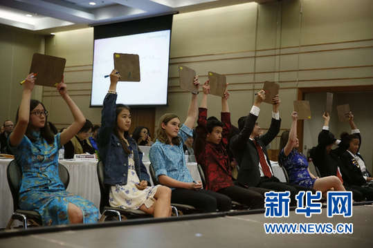 5月12日,在美国瓦尔普莱索大学,参赛选手参加知识问答环节。新华网记者汪平 摄