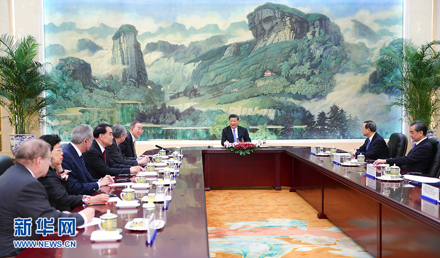 5月15日,国家主席习近平在北京人民大会堂会见博鳌亚洲论坛理事长潘基文。 新华社记者 谢环驰 摄
