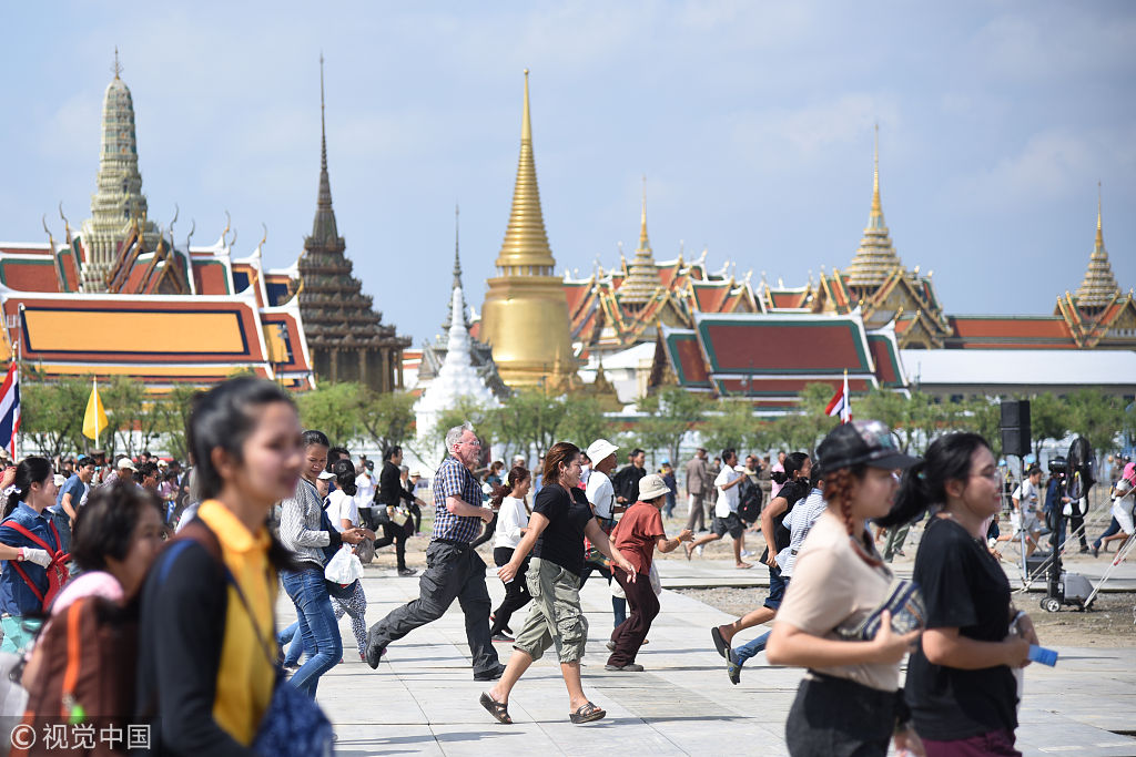 当地时间2018年5月14日,泰国曼谷,泰国农民参加一年一度皇家犁耕仪式,农民将收集的作物种子放入土地中,祈祷一年的丰收。(图片来源:视觉中国)