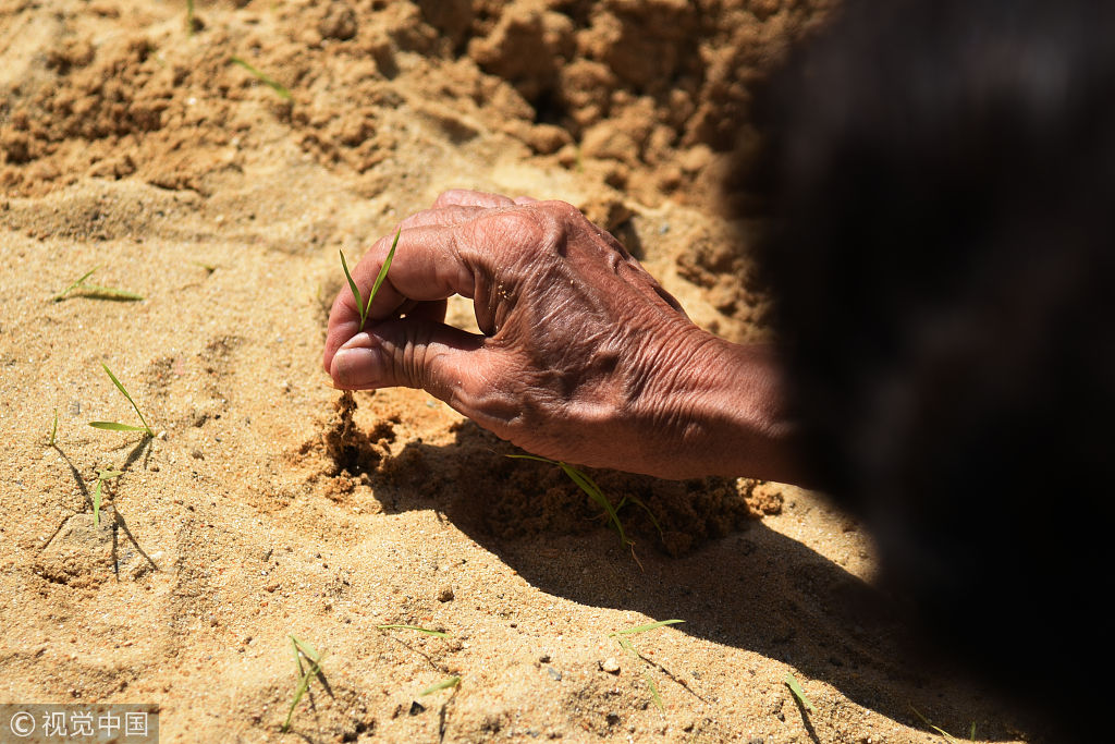 当地时间2018年5月14日,泰国曼谷,泰国农民参加一年一度皇家犁耕仪式,农民将收集的作物种子放入土地中,祈祷一年的丰收。(图片来源:视觉中国)