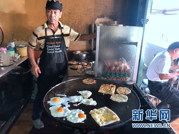 普吉街头小吃咖喱蛋饼。新华网发 陈家宝摄