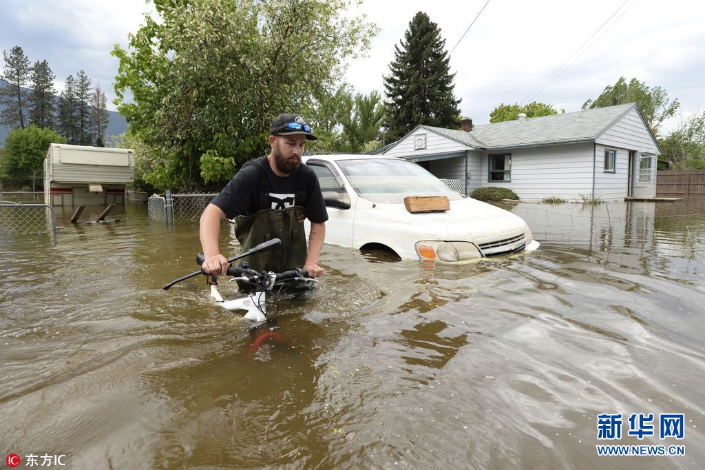 5月17日,加拿大不列颠哥伦比亚省Grand Forks,当地遭洪水袭击,房屋、车辆浸泡水中。(图片来源:东方IC)