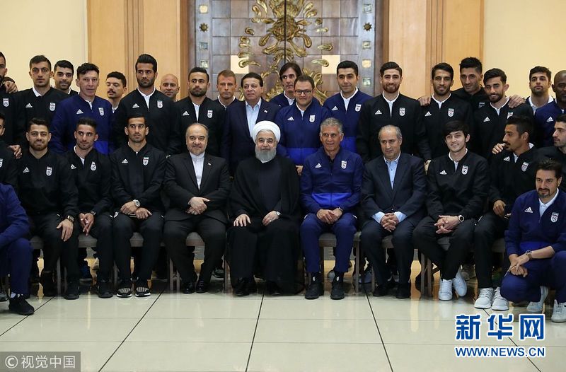 5月20日,伊朗德黑兰,伊朗总统鲁哈尼为将出征俄罗斯世界杯的伊朗男足送行。(图片来源:视觉中国)