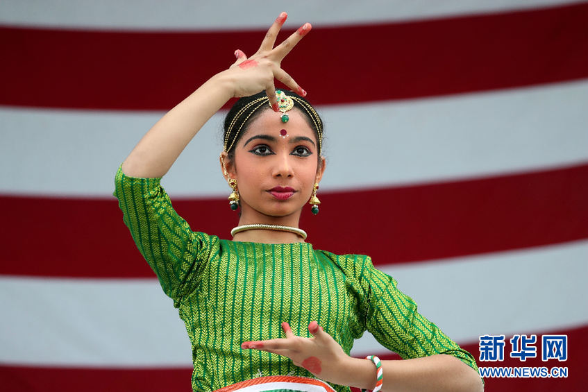 5月19日,来自印度族裔社区的一名女孩在第28届美国斯科基国际文化节上表演印度风格的舞蹈。 新华网记者汪平 摄