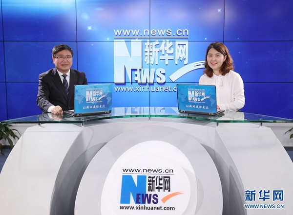 5月16日,外交部拉美司司长赵本堂(左)接受新华网独家专访。图为赵本堂在接受本次访谈主持人、新华网海外传播中心国际部主任徐倩专访。新华网记者 郭小天摄