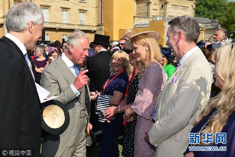 当地时间5月22日,英国伦敦,白金汉宫举办花园派对庆祝查尔斯王子70岁生日,刚刚完婚的哈里王子偕王妃梅根出席。(图片来源:视觉中国)