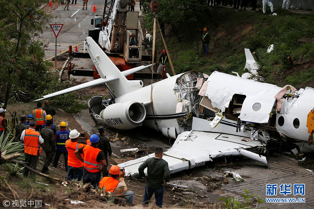 5月22日,洪都拉斯特古西加尔巴,一架Gulfstream G200飞机在通孔廷国际机场降落时滑出跑道,机身损毁严重。(图片来源:视觉中国)