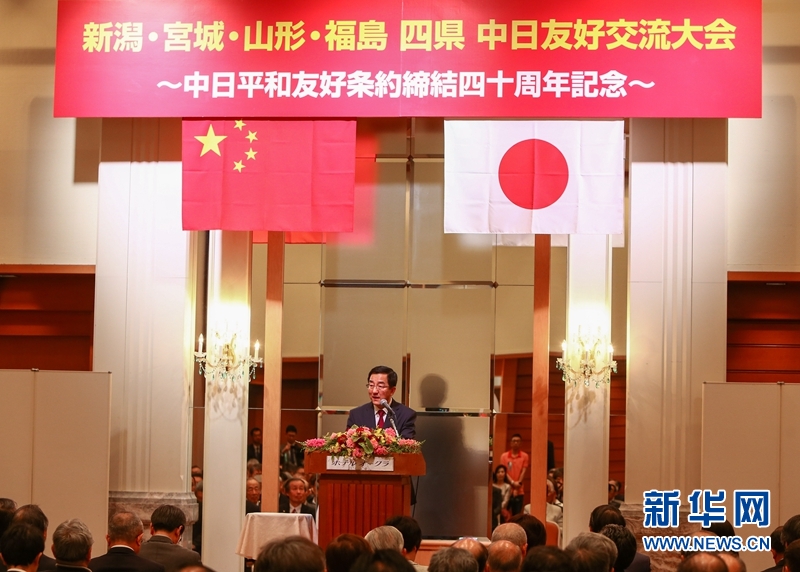 5月22日,日本新潟,中国驻新潟总领事孙大刚在日本4县中日友好交流大会上发言。新华网发 马曹冉 摄