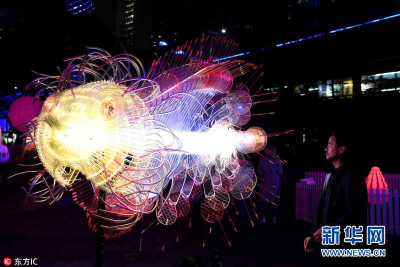 5月24日,澳大利亚悉尼,悉尼灯光音乐节举行预展,各色各样的灯光装置和灯光表演美轮美奂。(图片来源:东方IC)