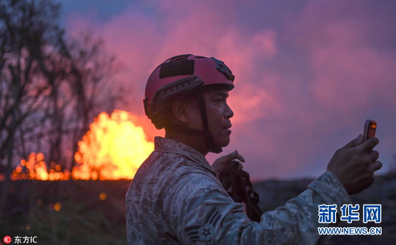 夏威夷火山继续喷发 岩浆泉涌画面震撼