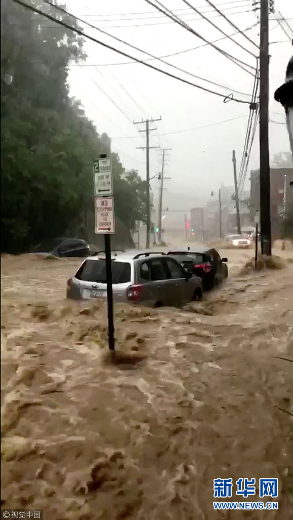 美国马里兰州爆发洪水 城市街道变湍急河流