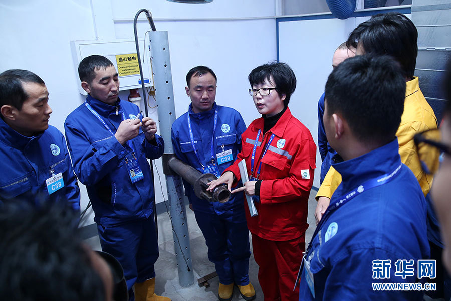 2017年11月10日,在河北廊坊举行的中国工会“一带一路”人文交流——上合组织国家职工技能大赛比赛前,裁判向选手们讲解注意事项。新华社记者 张铖 摄