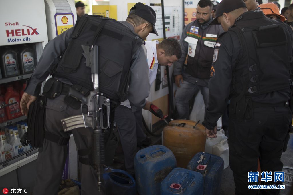 5月28日,巴西里约,巴西全国卡车司机罢工持续长达一周,导致燃料和食品短缺,民众排队购买汽油。(图片来源:东方IC)