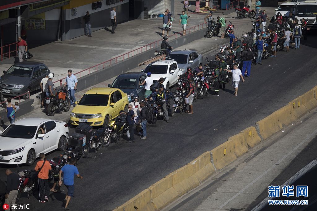 5月28日,巴西里约,巴西全国卡车司机罢工持续长达一周,导致燃料和食品短缺,民众排队购买汽油。(图片来源:东方IC)