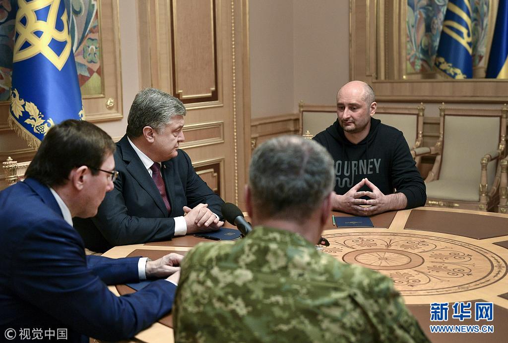 5月30日,乌克兰基辅,乌克兰总统波罗申科会见此前被报道“死亡”的俄罗斯记者巴布琴科。(图片来源:视觉中国)