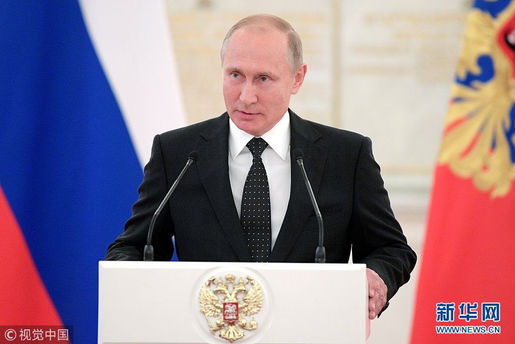 2018年5月31日,俄罗斯莫斯科,俄罗斯总统普京在克里姆林宫接见俄罗斯安全部队和司法当局高级官员,为其举行晋升仪式。(图片来源:视觉中国)