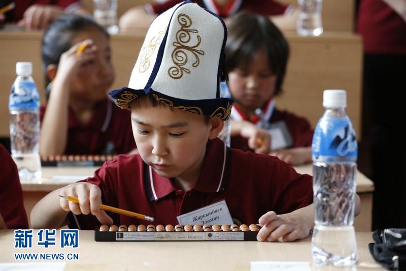 图为小选手在进行珠心算。新华网发(罗曼摄)