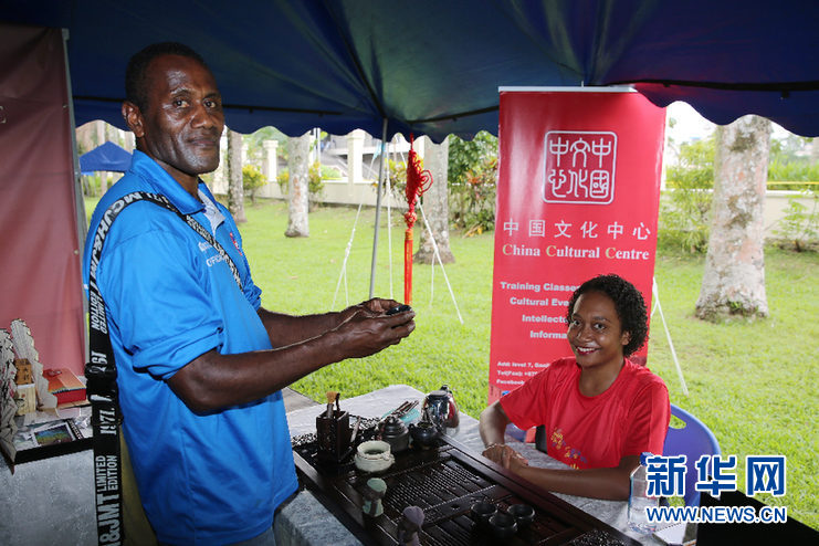 一位斐济青年正准备品尝中国名茶。 新华网记者张永兴 摄