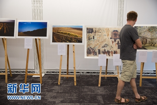 “敦煌与丝绸之路上的文化交流”图片展现场。新华网发 郭昱 摄