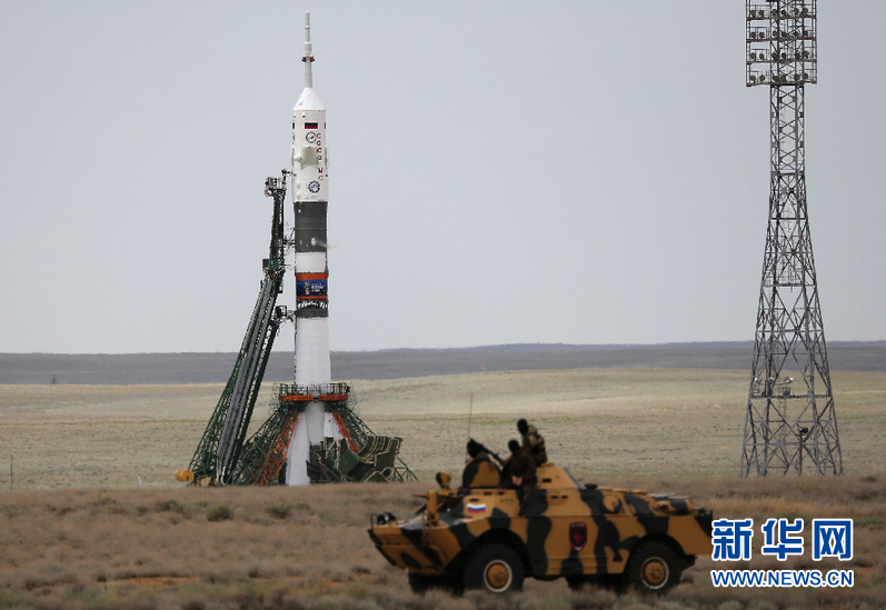 搭载着“联盟MS-09”载人飞船的“联盟-FG”火箭等待发射。新华网发 米赫耶夫摄