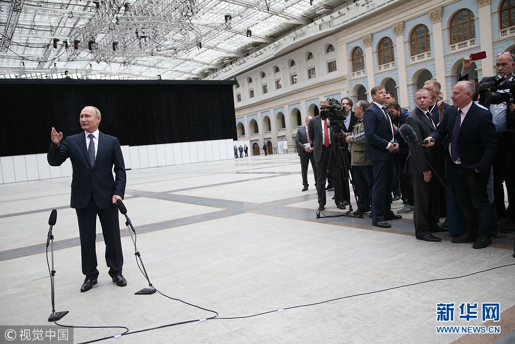 2018年6月7日,俄罗斯莫斯科,普京“直播连线”结束后召开记者会。(图片来源:视觉中国)