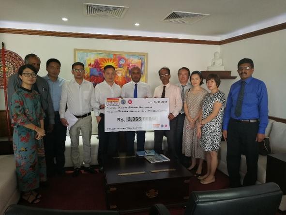 斯里兰卡华侨华人联合会向斯灾难管理部移交捐款。斯里兰卡华联会供图