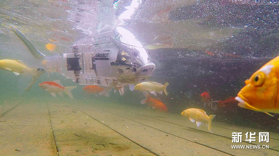 6月9日至10日,上海合作组织成员国元首理事会第十八次会议将在青岛举行。过去5年,上合组织砥砺前行,政治互信更深厚、务实合作更深入、国际影响更深远。图为在新闻中心展示的水下机器人。 新华网记者郭小天摄
