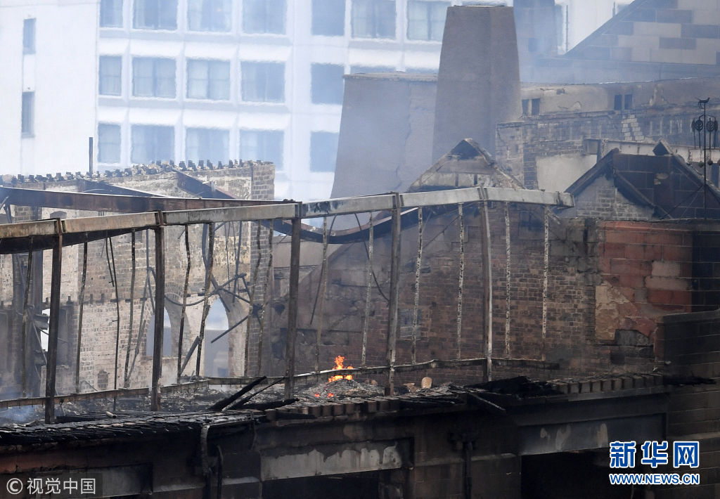 6月16日,英国格拉斯哥,格拉斯哥艺术学院内麦金托什大楼起火,消防员进行灭火。该大楼