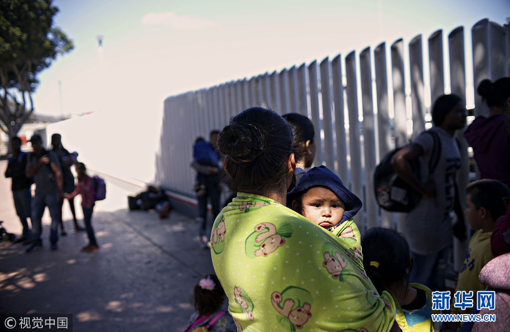 6月18日,墨西哥提华纳,无证移民和他们的孩子在入境口等待庇护听证。美国司法部在非法入境美国行为上采取“零容忍”政策,一个半月内近2000名移民儿童被迫与父母分离。“第一夫人”梅拉尼娅·特朗普也为此罕见表态:“讨厌看到这一幕。”(图片来源:视觉中国)