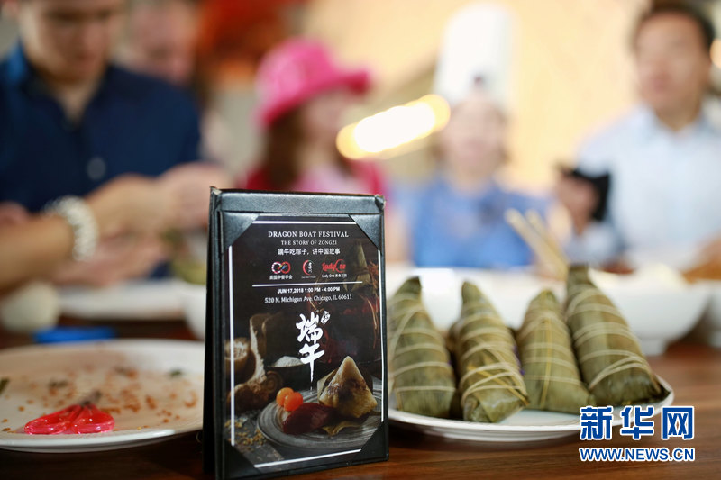 6月17日,在美国芝加哥市中心的老四川餐厅展示的粽子。 新华网记者汪平 摄