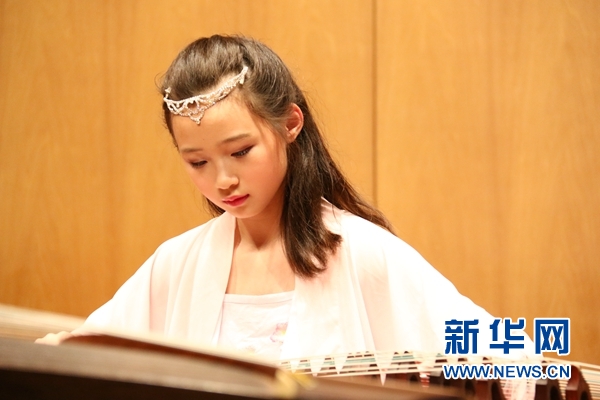 东京少儿古筝乐团成员渡边美姬在表演。新华网记者杨林 摄
