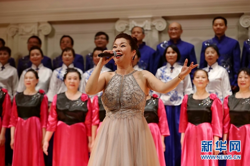 6月16日,在美国芝加哥,民族歌手吴小萍表演《枉凝眉》《绒花》等经典民歌联唱。新华网记者 汪平摄