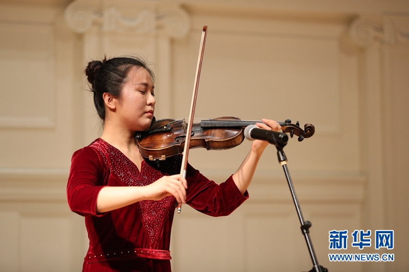 6月16日,在美国芝加哥,郭晓可表演小提琴独奏《梁祝》片段。新华网记者 汪平摄