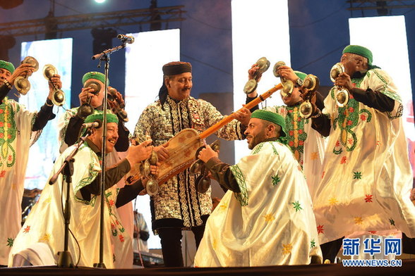 艺术家在第21届格纳瓦世界音乐节开幕式上演出。新华网发 艾萨摄