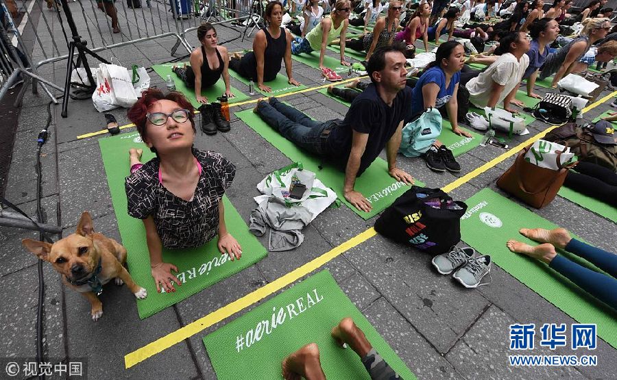 当地时间6月21日,美国纽约,民众在纽约广场集体做瑜伽庆祝瑜伽日到来。(图片来源:视觉中国)