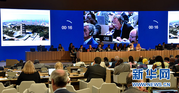 6月29日,在巴林首都麦纳麦,第42届世界遗产委员会会议审议中国申报的“古泉州(刺桐)史迹”文化遗产项目。新华社记者 王波 摄