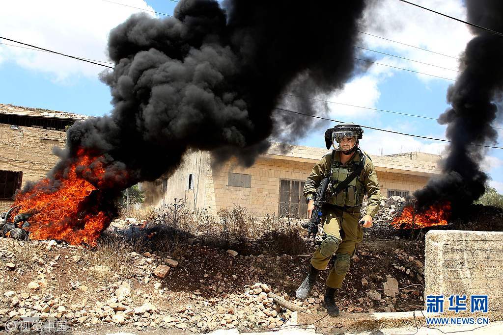 6月29日,约旦河西岸纳布卢斯,巴勒斯坦人与以色列安全部队发生冲突,抗议以色列修建隔离墙和犹太人定居点。(图片来源:视觉中国)