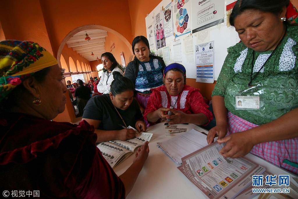 当地时间2018年7月1日,墨西哥SAN BARTOLOME QUIALANA,墨西哥总统选举投票正式开始,4名候选人将角逐总统职位。(图片来源:视觉中国)