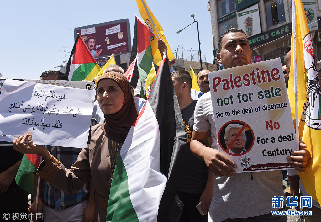当地时间2018年7月2日,约旦河西岸拉马拉,巴勒斯坦民众焚烧特朗普肖像,抗议美国与以色列达成和平协议。 (图片来源:视觉中国)