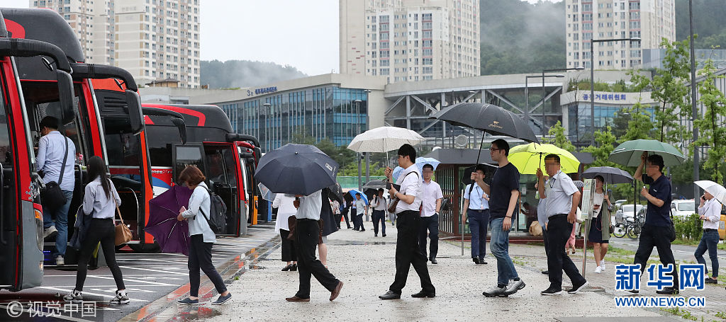 当地时间2018年7月2日下午,韩国世宗,政府大楼里的工作人员6点准时下班。当天韩国迎来实施每周52工时制后的第一个星期一。公务员虽然不是适用《劳动标准法》的对象,但为了新制度的顺利实施,政府部门力图做好表率。(图片来源:视觉中国)
