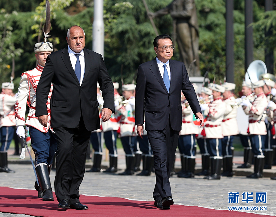 当地时间7月6日上午,国务院总理李克强在索非亚总理府同保加利亚总理鲍里索夫举行会谈。会谈前,鲍里索夫在亚历山大·涅夫斯基广场为李克强举行隆重欢迎仪式。新华社记者 丁海涛 摄