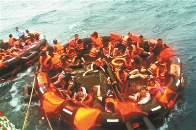 在“凤凰号”下沉之前,陈林就跳下了水,他把救生筏解开,还救起了两个孩子。