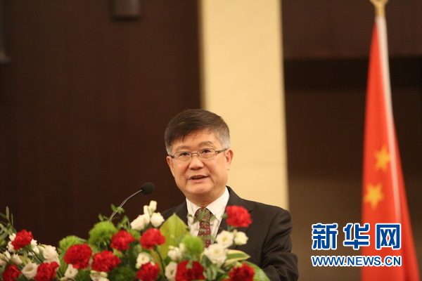 中国驻白俄罗斯大使崔启明在奖学金颁发典礼上致辞。新华网记者 魏忠杰摄