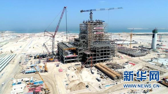 这是6月27日在阿联酋迪拜拍摄的哈翔清洁燃煤电站施工现场。 在阿联酋迪拜以南30多公里的海边,迪拜哈翔清洁燃煤电站正在施工,这是建设中的中东地区首座清洁燃煤电站,也是“一带一路”框架下中东地区首个中资企业参与投资、建设和运营的电站项目。 新华社发(张春明摄)