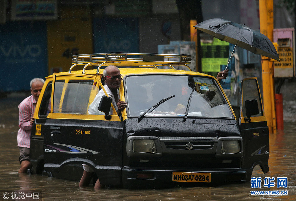 当地时间2018年7月8日,印度孟买,强季风雨导致当地发生洪灾。(图片来源:视觉中国)