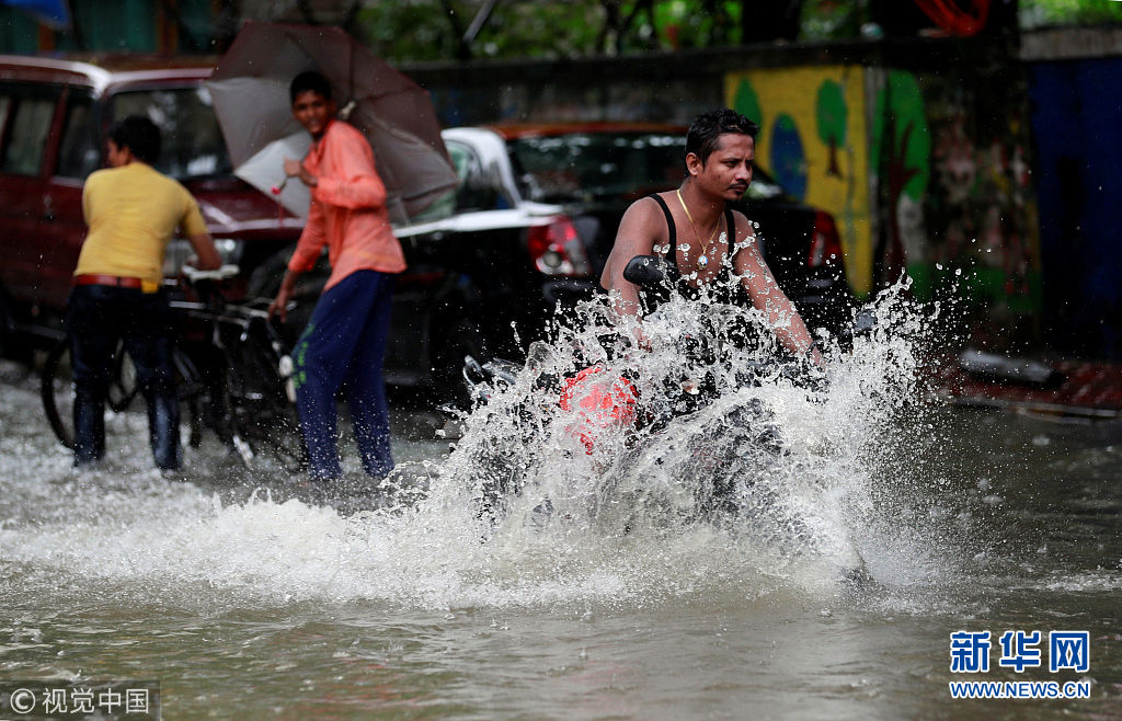 当地时间2018年7月8日,印度孟买,强季风雨导致当地发生洪灾。(图片来源:视觉中国)