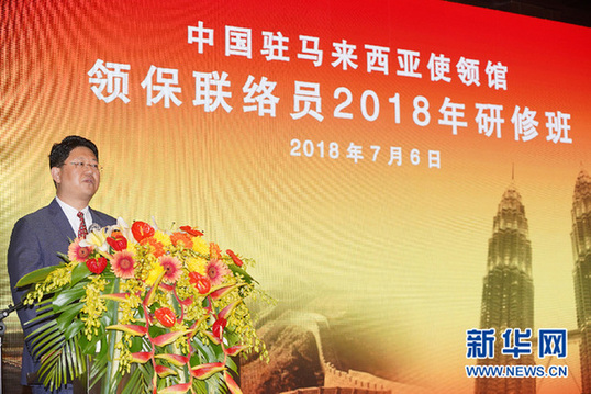 中国驻马来西亚大使白天在领事保护联络员研修班开班仪式上致辞。 新华网记者 林昊摄